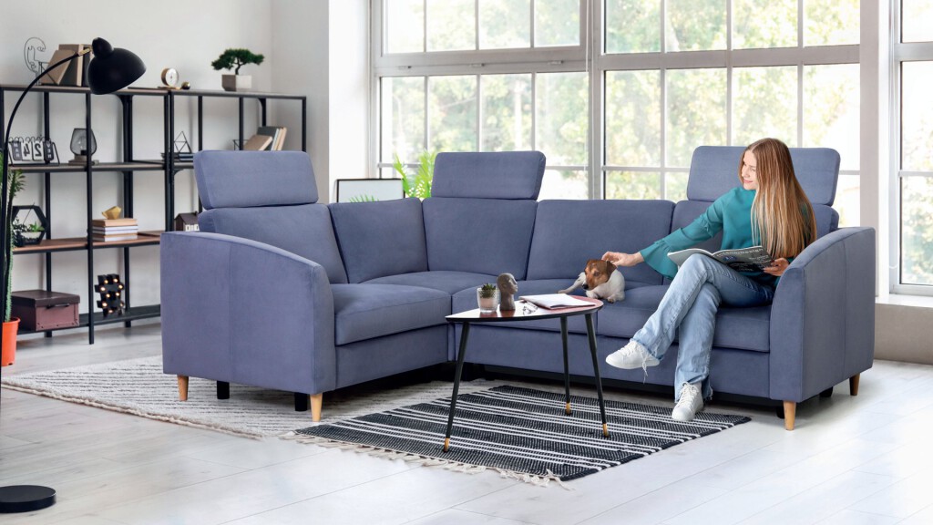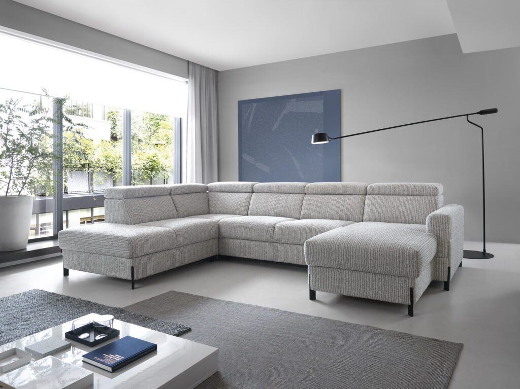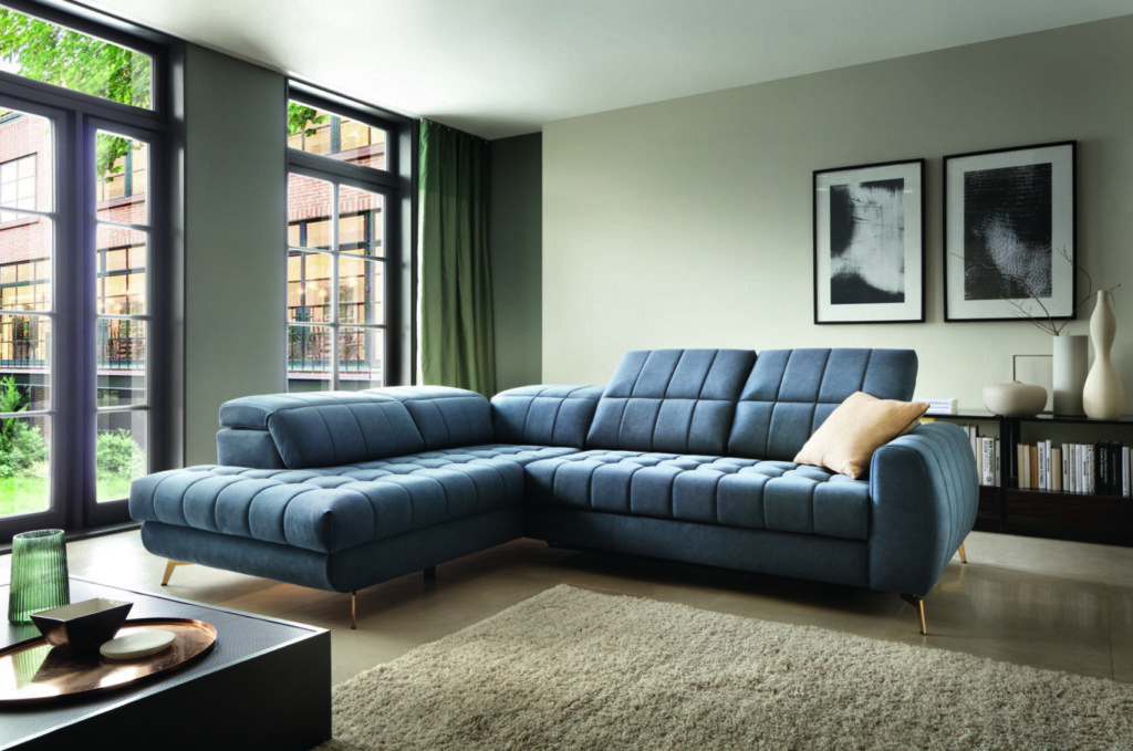 Komfortowy narożnik z funkcją spania i regulowanymi zagłówkami