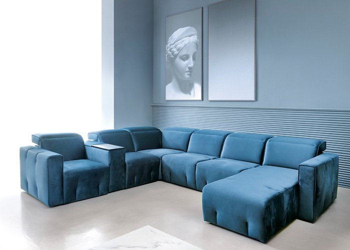 Zgrabny zestaw wypoczynkowy tworzony z modułów. Piękny przykład designu z gruntu nowoczesnego, a przy tym nie minimalistycznego. Wielomodułowe układy mogą być proste lub narożnikowe, z szezlongiem i terminalem.
