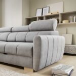 Narożnik Daytona to wygodny i funkcjonalny narożnik o zaokrąglonych kształtach. Jego ergonomiczna budowa, z zaokrąglonym oparciem, nie tylko gwarantuje wygodę, ale również dodaje sofie subtelnej estetyki. Przeszycia na siedzisku i podłokietnikach nadają meblowi charakteru i elegancji, tworząc przy tym interesujący detal. Jedną z praktycznych cech narożnika Daytona jest jego funkcja spania, rozkładana za pomocą automatu typu „puma”. Rozkładanie mebla odbywa się jednym płynnym ruchem, zapewniając komfortowy sen. Dodatkowym atutem jest pojemnik na pościel, umieszczony w otomanie, co sprawia, że narożnik staje się nie tylko miejscem relaksu, ale także praktycznym rozwiązaniem do przechowywania.