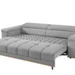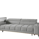 Sofa Party to wysublimowana propozycja dla odważanych. W meblu połączono nowoczesny design z klasyką. Elementem ozdobnym jest listwa z drewna bukowego i czarne matowe nóżki wykonane z metalu. Niska bryła zmienia swoją optykę dzięki regulowanym zagłówkom – zwiększamy w ten sposób wysokość oparcia.